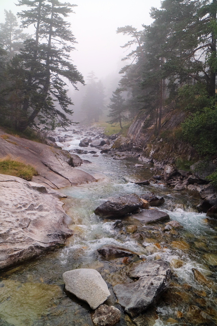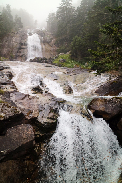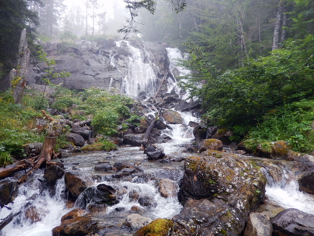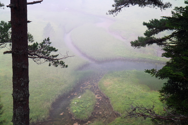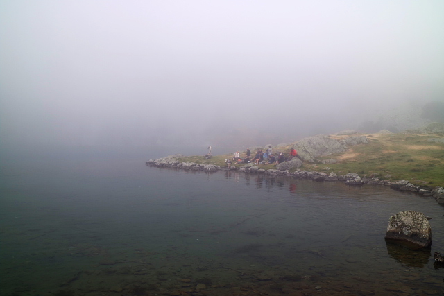 | ガヴァルニー村を発ち、ゴーブ湖へ向かった。 このときだけお天気があまりよくなく、少し雨に降られたが、大したことはなく、すぐに上がった。 霧が濃かったが、ゆったりと散策を楽しめた。 |