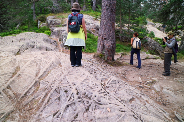 | ワッフルのような岩がある。(M) | 登山道の下に湿原が・・・(M) | ||