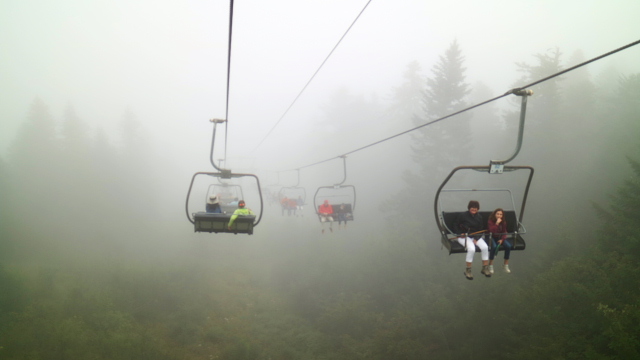 | 屋外にベンチが並ぶ(S) | リフトで下る。(M) | ||