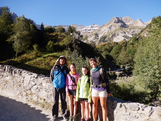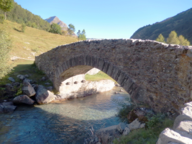 | ハイキングに向かう。ガイドさんとその双子の娘さん(S) | 石のアーチ橋。(S) | ||